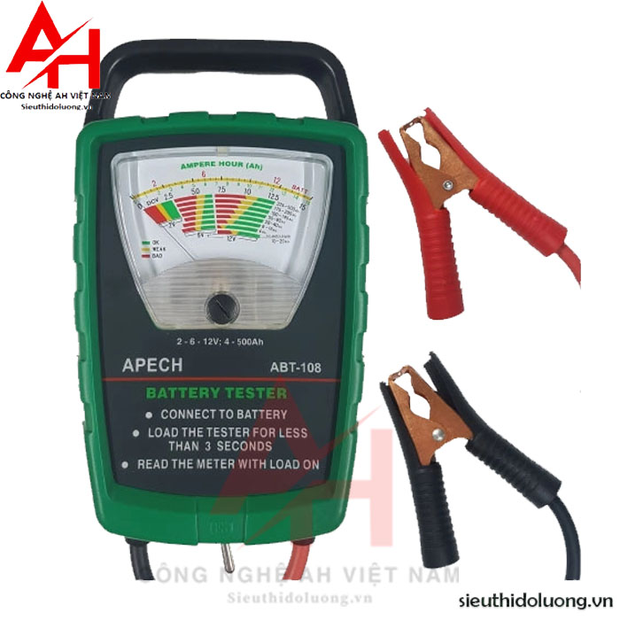 Thiết bị kiểm tra chất lượng bình ắc quy model ABT-108, được thiết kế để kiểm tra điều kiện năng lực của các loại ắc quy khác nhau ,từ 4 đến 500 ampe và có ba thang đo 2 V , 6V và 12 V DC ắc quy .