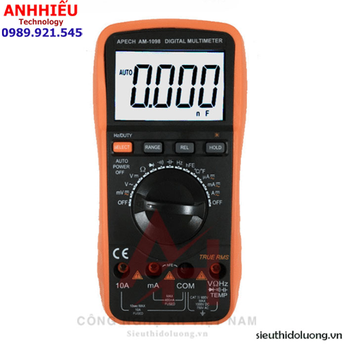 Đồng hồ đo điện vạn năng điện tử APECH AM-1098 là mẫu đồng hồ vạn năng điện tử thuộc phân khúc giá rẻ sở hữu tính năng TRUE RMS cho trải nghiệm khi đo cực kỳ ổn định chính xác, được trang bị rất nhiều các chức năng đo phù hợp cho nhiều đối tượng sử dụng khác nhau. Đồng hồ vạn năng điện tử APECH AM-1098 chính là người bạn đồng hành lý tưởng dành cho anh em dù có khả năng tài chính eo hẹp nhưng vẫn có thể sở hữu 1 chiếc đồng hồ vạn năng chất lượng cao và xài bền bỉ nhiều năm liền.