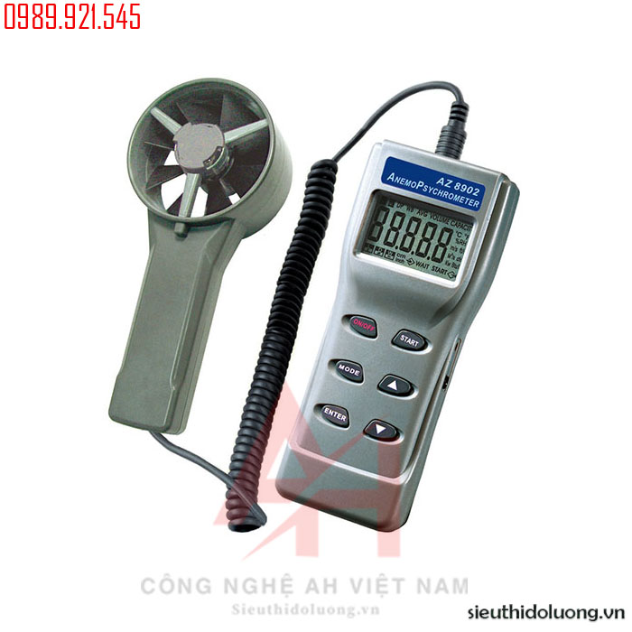 Máy đo tốc độ gió AZ 8902 có quạt điều khiển từ xa để đo Tốc độ không khí, Vận tốc không khí, Thể tích không khí, Nhiệt độ, Độ ẩm, điểm sương và nhiệt độ bầu ướt. Cảm biến được tích hợp trong quạt điều khiển từ xa và được bảo vệ đặc biệt bằng nắp xoay. Người dùng có thể bật nắp trước khi vận hành, sau đó đọc nhiệt độ và độ ẩm chính xác.