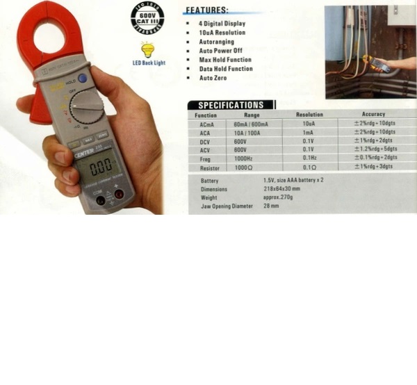 Không như các dòng ampe kìm đo dòng rò khác, hiếm khi được trang bị thêm tính năng khác ngoài chức năng chính đo dòng rò. Ampe kìm CENTER 235 còn có nhiều tính năng thông dụng khác của một chiếc ampe kìm, như: đo dòng AC, đó điện áp AC/DC, đo tần số, đo điện trở.