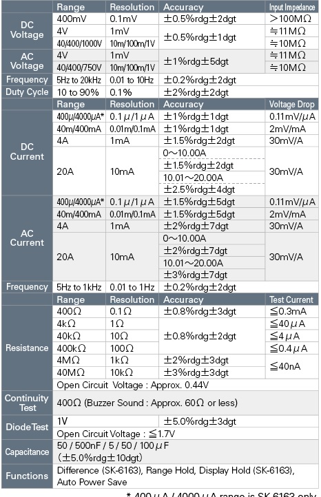 1. Thông số kỹ thuật Đồng hồ vạn năng Kaise SK-6163 - Made in Janpan