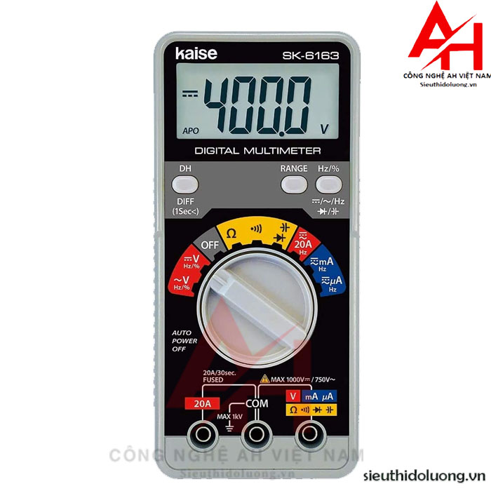 Đồng hồ vạn năng Kaise SK-6163 là chiếc đồng hồ vạn năng có kích thước nhỏ gọn. Máy có độ chính xác cao, độ bền tuyệt vời, đi kèm nhiều công nghệ hiện đại nhất để bảo vệ an toàn khi đo cho người sử dụng và thiết bị.