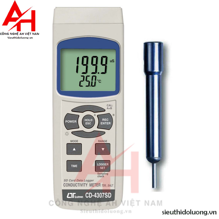 Máy đo độ dẫn điện của nước LUTRON CD-4307SD với chức năng ghi dữ liệu với thẻ nhớ sd datalogger đánh dấu một bước tiến bộ cho bạn vào lĩnh vực đo lường độ dẫn điện của nước 1 cách chính xác. Thiết kế đầu dò riêng biệt, dễ vận hành. Máy tích hợp nhiều tính năng như độ dẫn điện, TDS, đo độ mặn của nước, nhiệt độ.