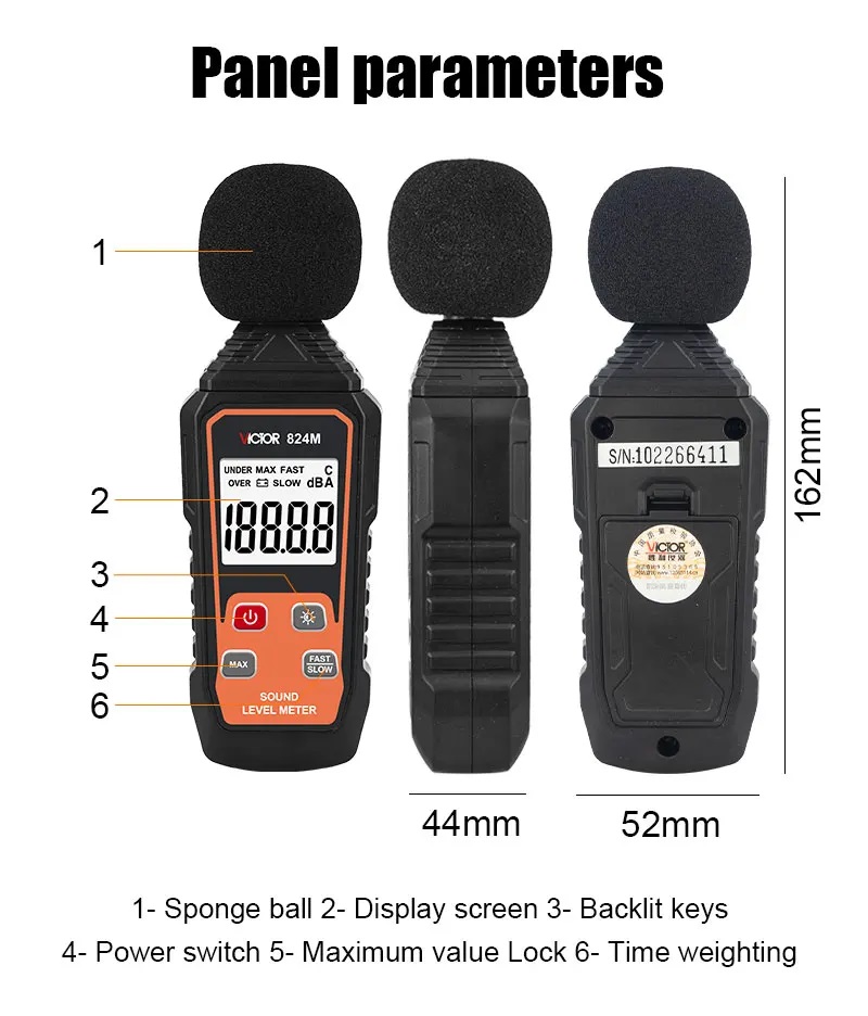 Thông số kỹ thuật máy đo độ ồn Victor 824M