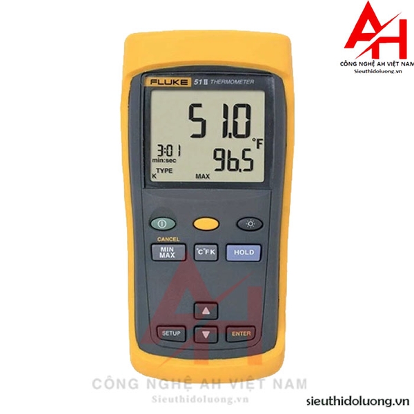 👉 Fluke 51 II là máy đo nhiệt độ 1 kênh, sử dụng cảm biến nhiệt điện (thermocouple) loại K.