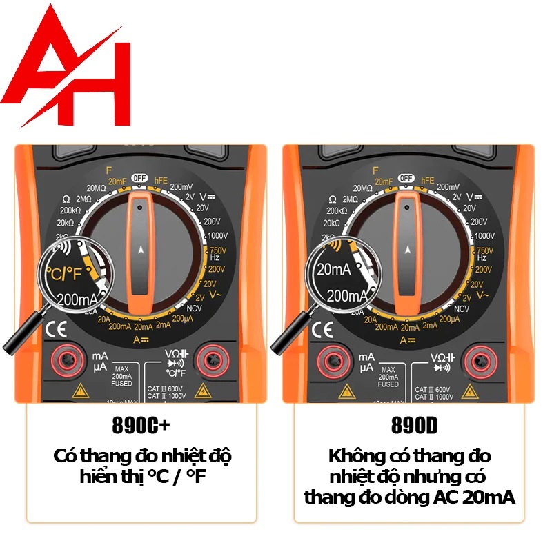 Dòng AC: 20mA / 200mA/20A ± (1.0% +15).